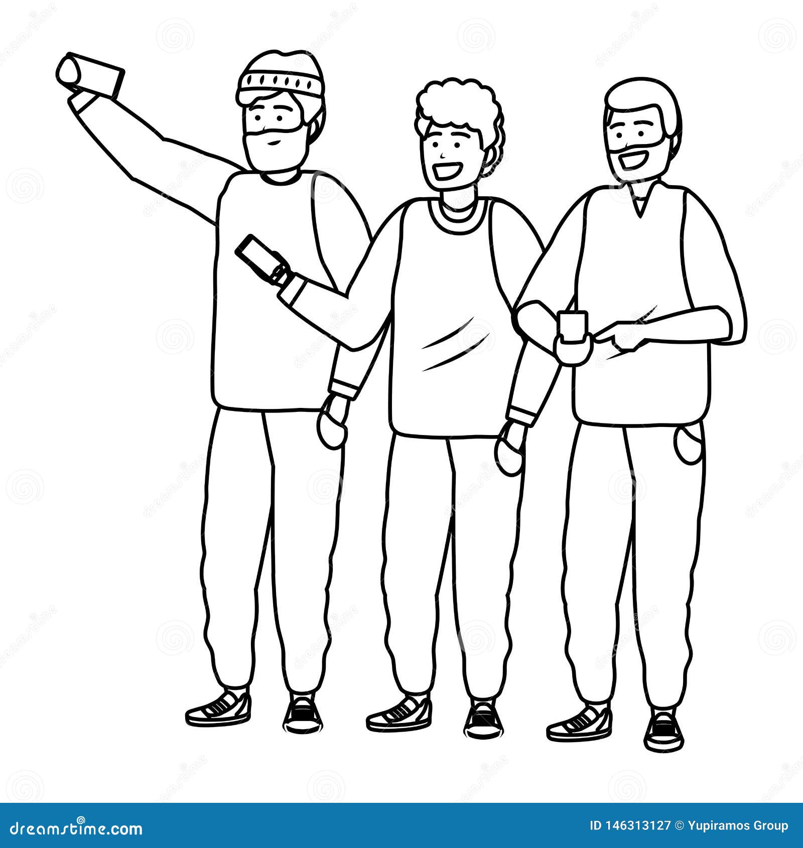 Millennial Group Using Smartphone Taking Selfie Posing Together Smiling Happy Sweater Beard Afro Black And White Vector Illustration Graphic Design Stock Vector Image Art Alamy In this selfie, you can click your picture by clicking in front of a mirror with your back camera.